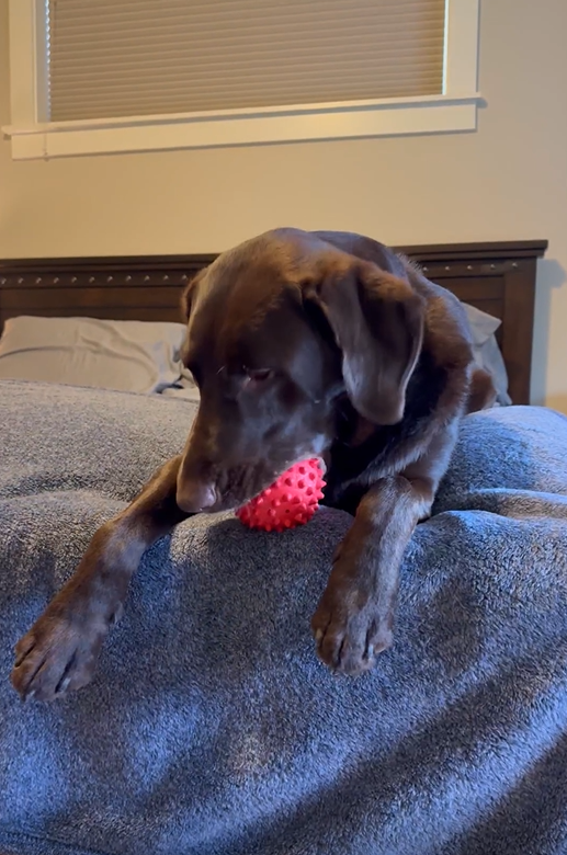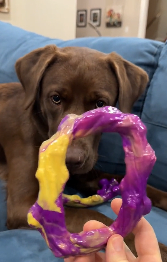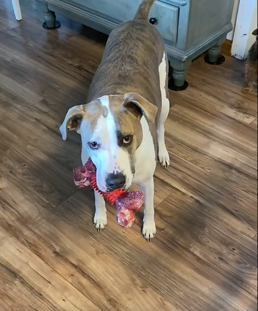When you have a dog that chews thru everything like it was made of paper, including your furniture and walls, it is nice to find a toy that stands up to a beating but is also enjoyed. My dog loves this thing. Carries it, chews it, puts it in his food bowl, and sleeps with it, as seen in pic. The only downside is it is heavy and a toe killer. My dog will take it and drop it over our feet to play, not realizing he is bruising toes. But if it saves our house from being his chew toy, we will make the sacrifice.