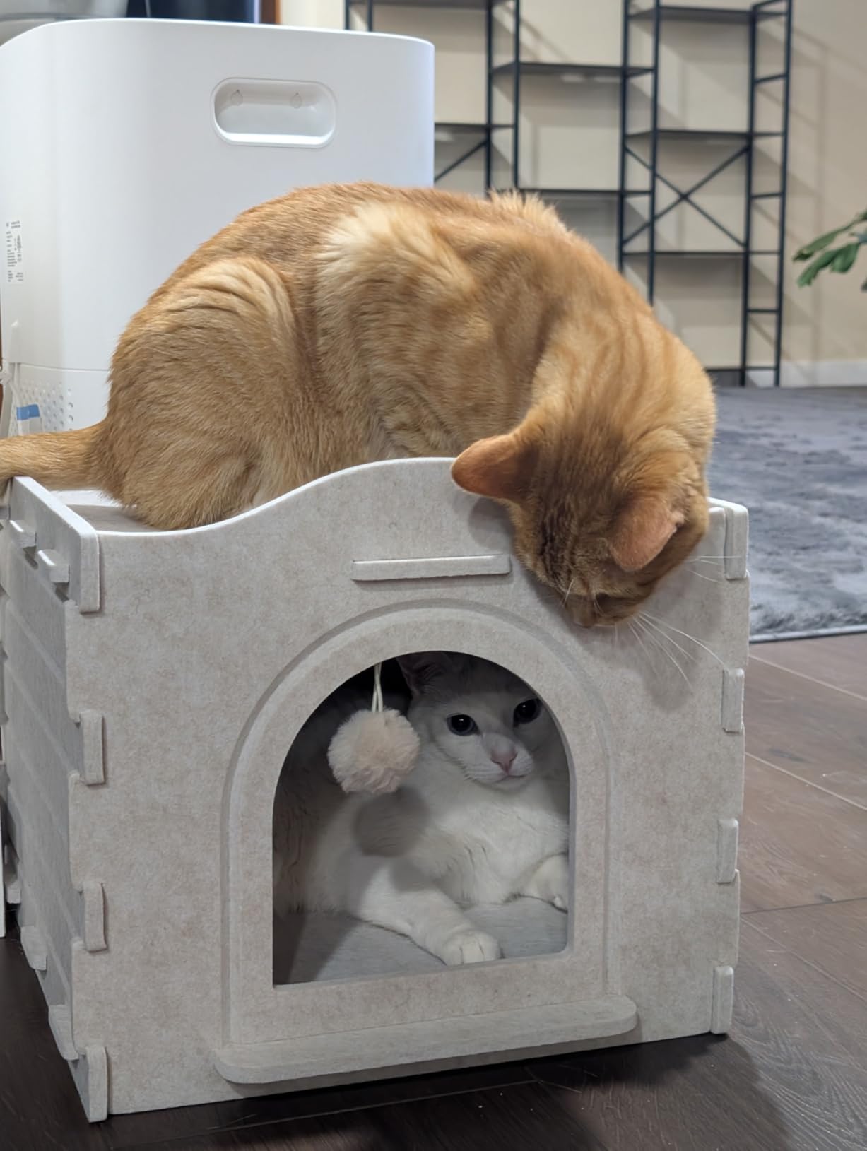 • 🌞 Double-layer cat house – One level for lounging, one for hiding — ideal for curious cats.