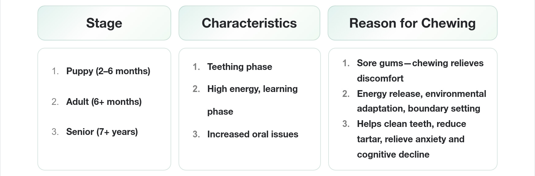 2. 🦷 Chewing Behavior & Developmental Stages in Dogs