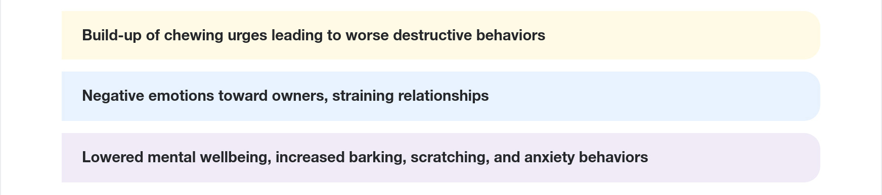 Without proper outlets, dogs resort to chewing furniture, shoes, wires, carpets — anything within reach.