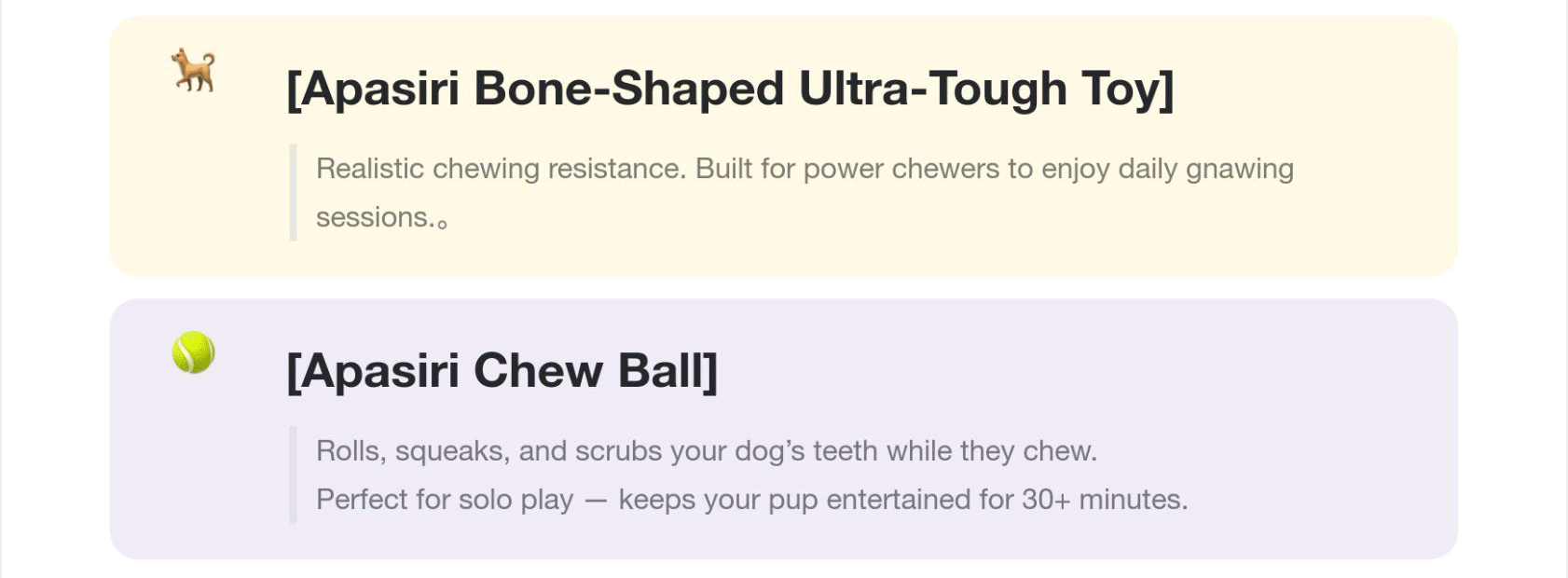 💪 Apasiri’s top toys are specially designed for aggressive chewers and larger breeds: